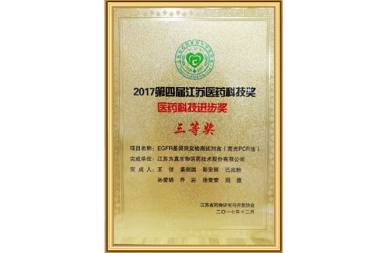 江苏省医药科技进步奖三等奖